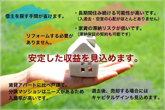 ・物件購入時点から入居者が決まっているため、借主を探す手間が省けます。